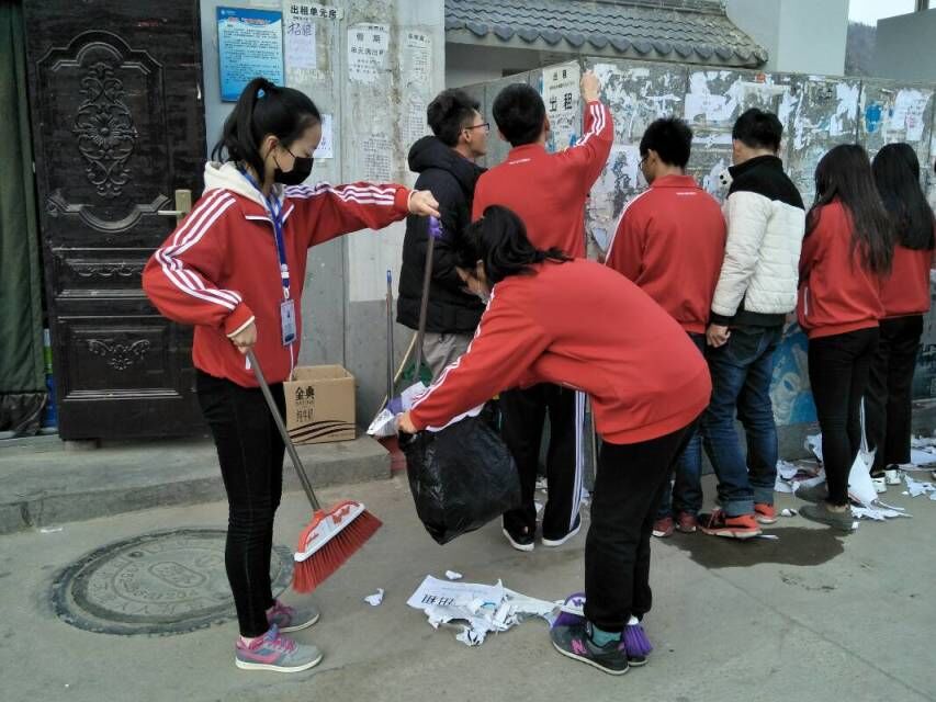 活动伊始,全体成员在先锋广场集合,主席孙斌对本次“雷锋月”志愿者活动的流程、意义做了简单的说明,并鼓励我们要发扬乐于奉献的精神。然后组成了三个小队对男生宿舍、女生宿舍和三大门黑板上的小广告进行清理。同学们积极参与,以雷锋为榜样,从身边小事做起,不怕脏,不怕累,为我们的校园环境做出了贡献。初春的早晨还是刮起了刺骨的冷风,同学们的手冻的通红,碎纸屑被吹的满天为清理工作增加了不少的困难,但丝毫不影同学们内心的火热心情,黑板上的小广告在大家默契的协作配合下不出很快就已经完成了。